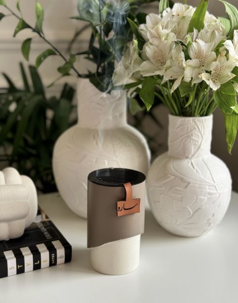 مبخر خشبي بتصميم انيق وراقي ، مع تاق طباعه الاسم